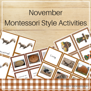 Add some silk leaves, acorns, nuts, mini logs and a few fuzzy little (toy) squirrels to a sensory bin for some open ended play and exploration.